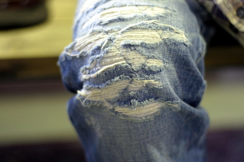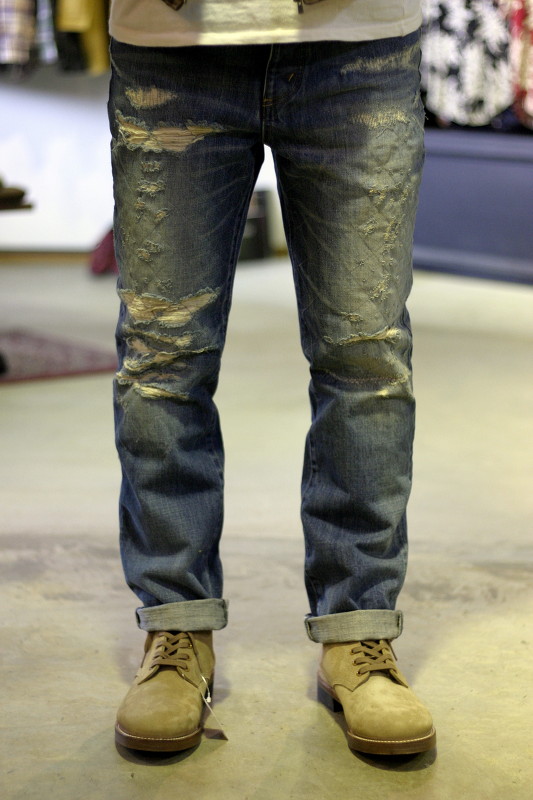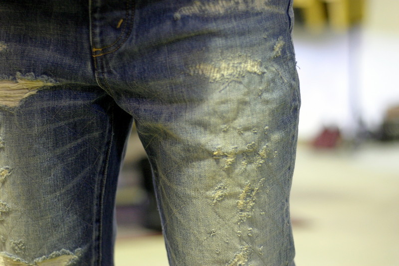 デニムはすべて手作業での