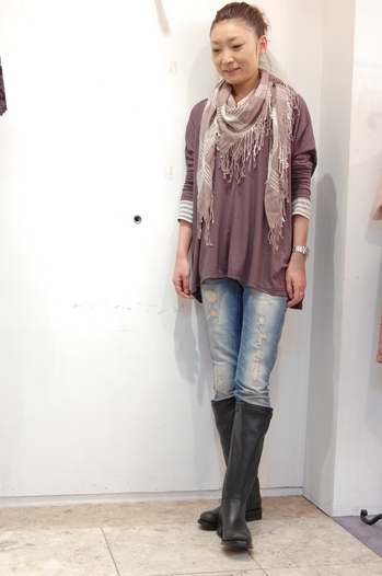 シンプルだけどつま先のダメージがオシャレ感をそそります。